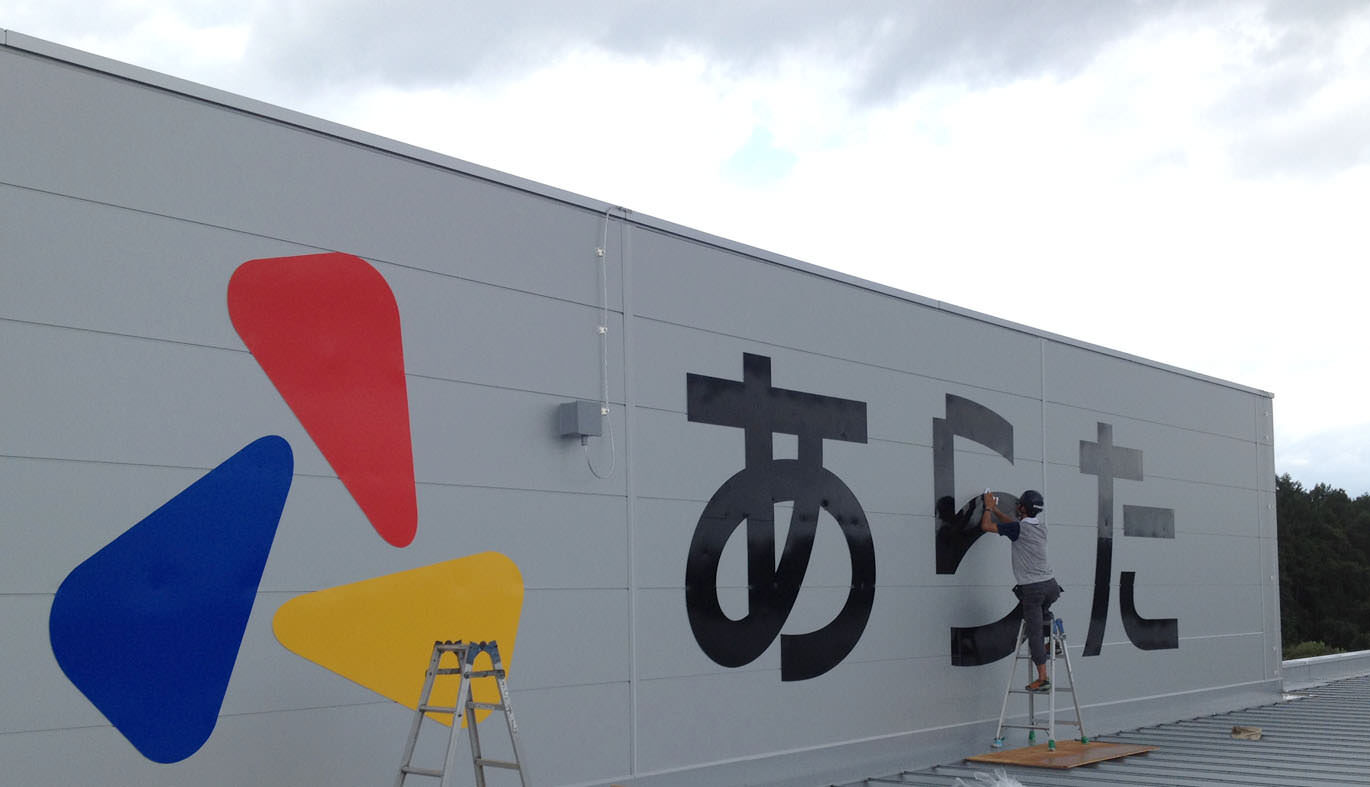 ファサード看板(お店の上部につく看板)に使用されることが多く、店名や社名をカルプの立体文字にするだけで大きく印象を変えることができます。厚みがあるので視認性・高級感もアップします。